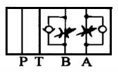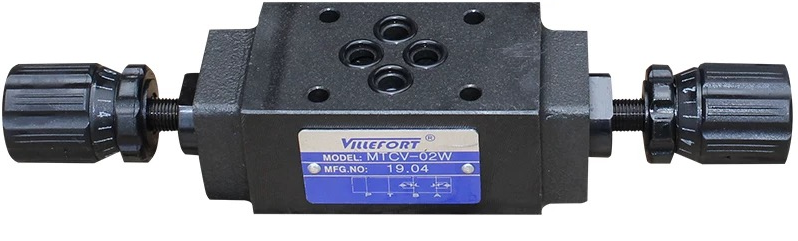 疊加調(diào)速閥(單向節(jié)流閥):通過調(diào)節(jié)桿控制,改變閥體出口端流量的大小來調(diào)整機(jī)床功能部件的運(yùn)行速度。