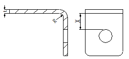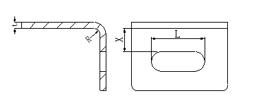如圖1-16所示折彎處孔邊離折線太近,折彎時(shí)料無(wú)法帶起,產(chǎn)生孔形狀變形;因此,孔邊與折彎線要求大于最小孔邊距X≥t+R。